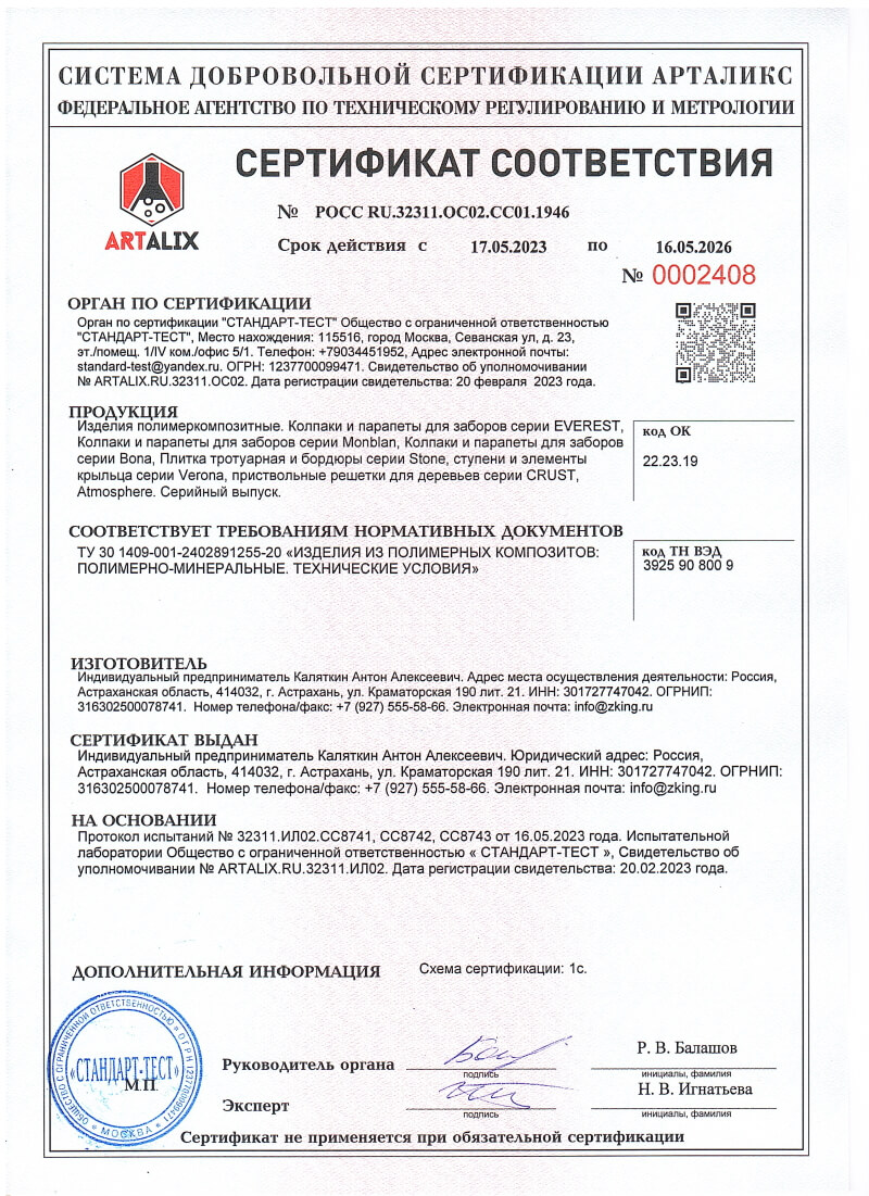 Сертификаты соответствия ZKING для Черкесска